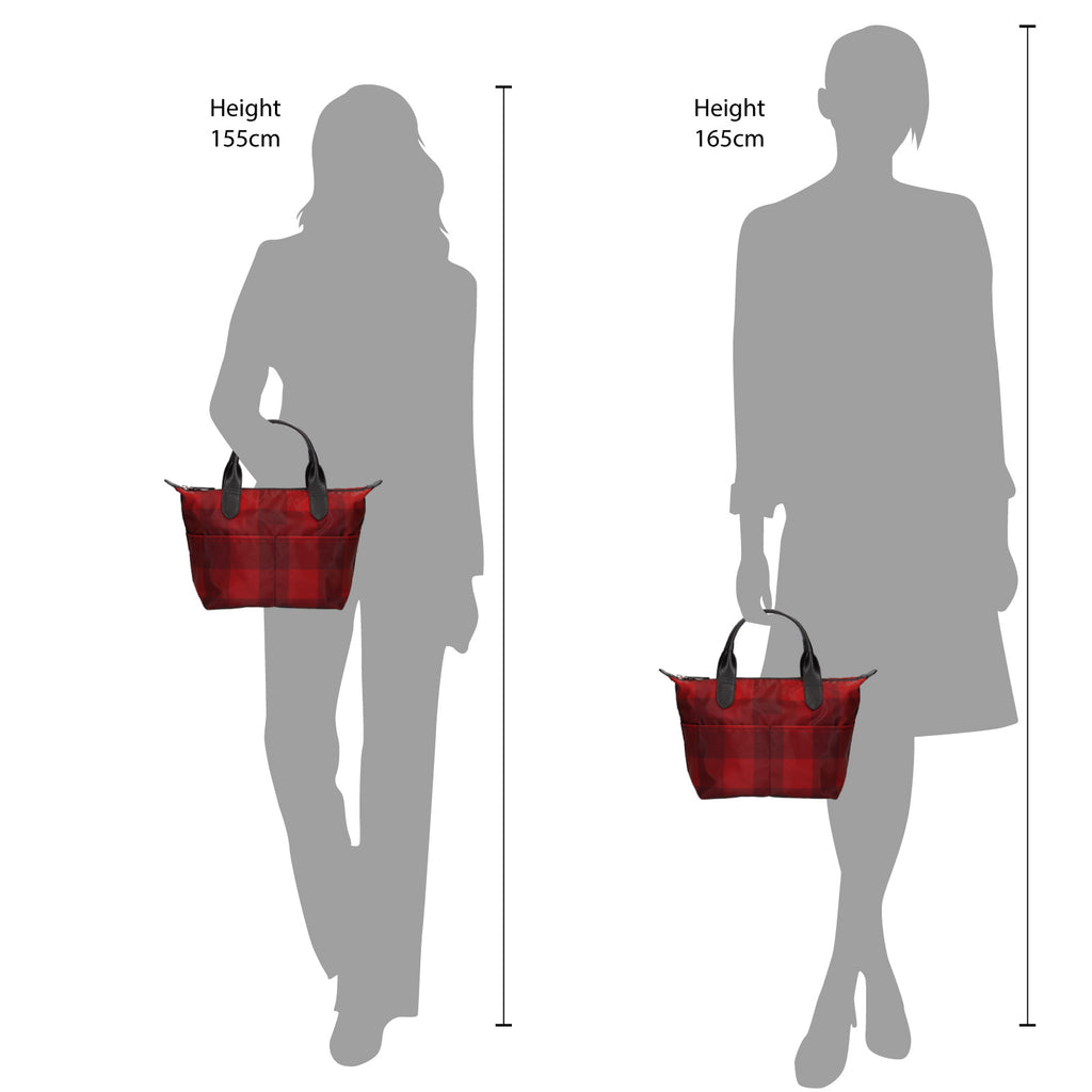 手に取っていただくとその軽さに驚くバッグです。シンプルなデザインを引き立てる美しい素材はMADE IN JAPAN。透けるほど薄い生地ですが、毎日の使用を考え、強度のあるナイロン糸を使い、丁寧に織っています。コーディネートのポイントにもなるチェック柄はシンプルなお洋服を引き立てます。座った時に膝の上に収まるサイズが魅力。気軽に持てて、きちんと見えるデザインです。開閉は安心のファスナー式。