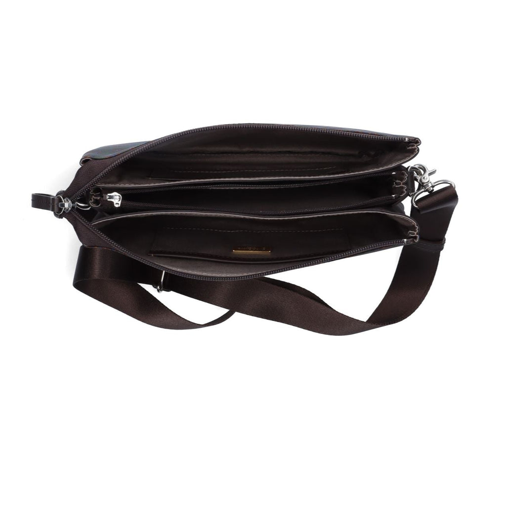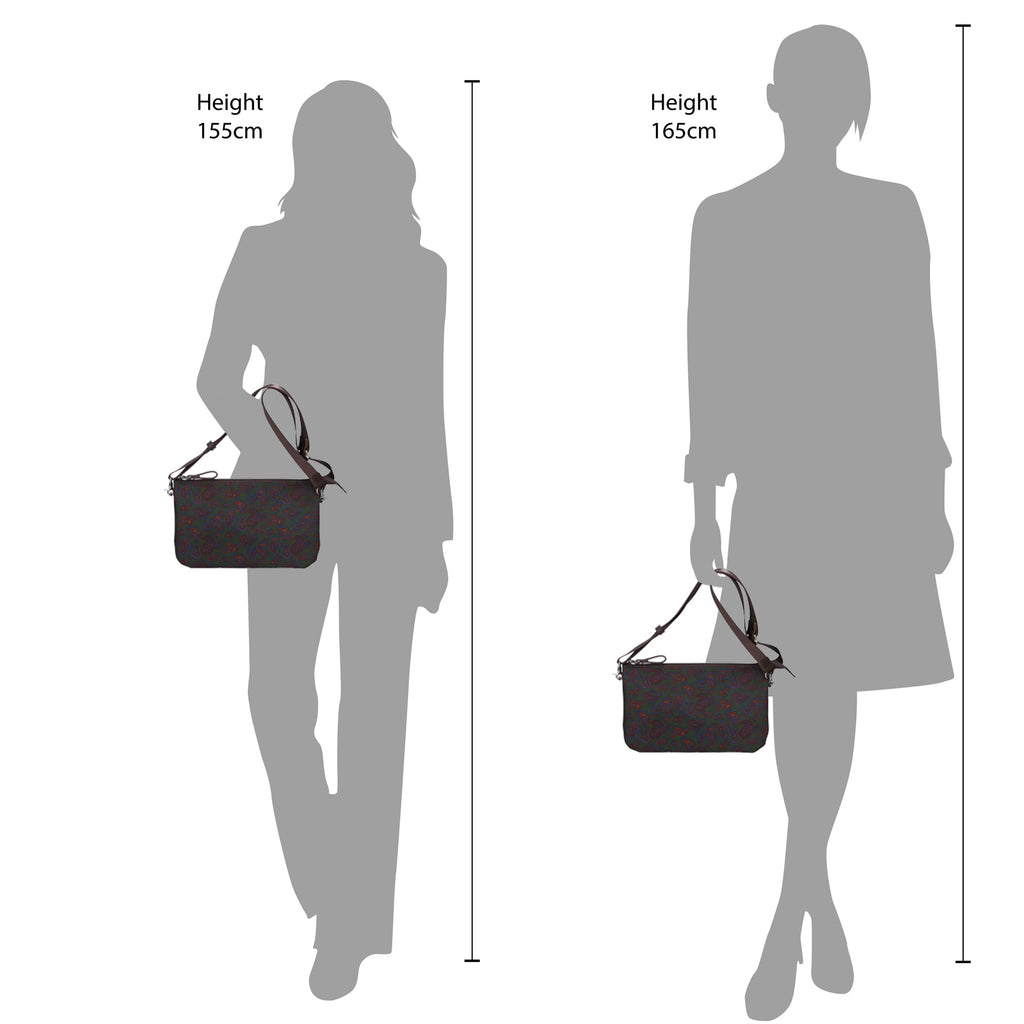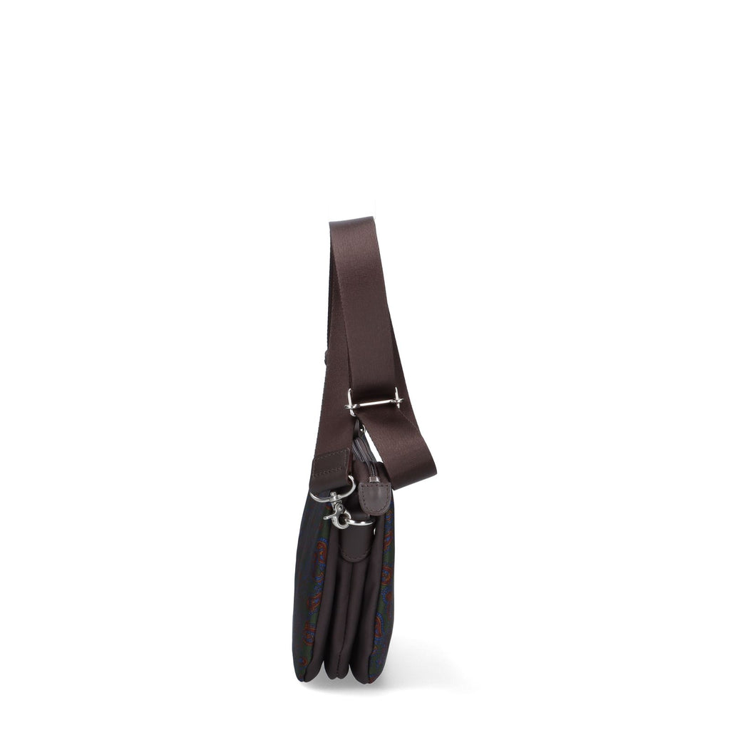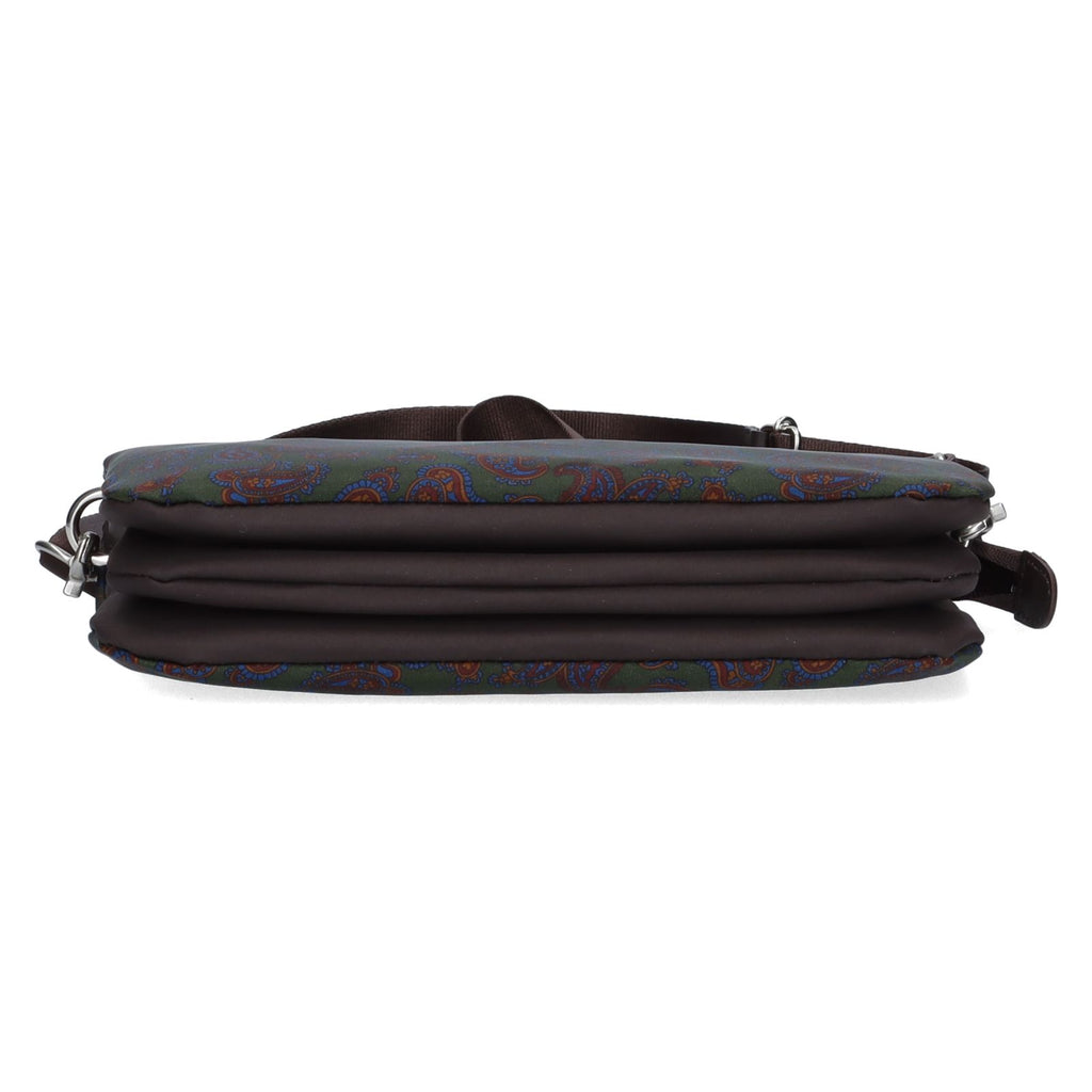 バッグの中で荷物が迷子にならない充実のポケットが魅力。細々した小物が必要な時にすぐに見つけやすいように、サイズや深さを変えたポケットをデザインしています。メインのファスナーを開けると内側が5つに分かれています。中央は安心のファスナー式。貴重品の収納にぴったりです。落ち着いた色合いのペーズリー柄は、装いに馴染みやすく合わせやすいのもポイントです。