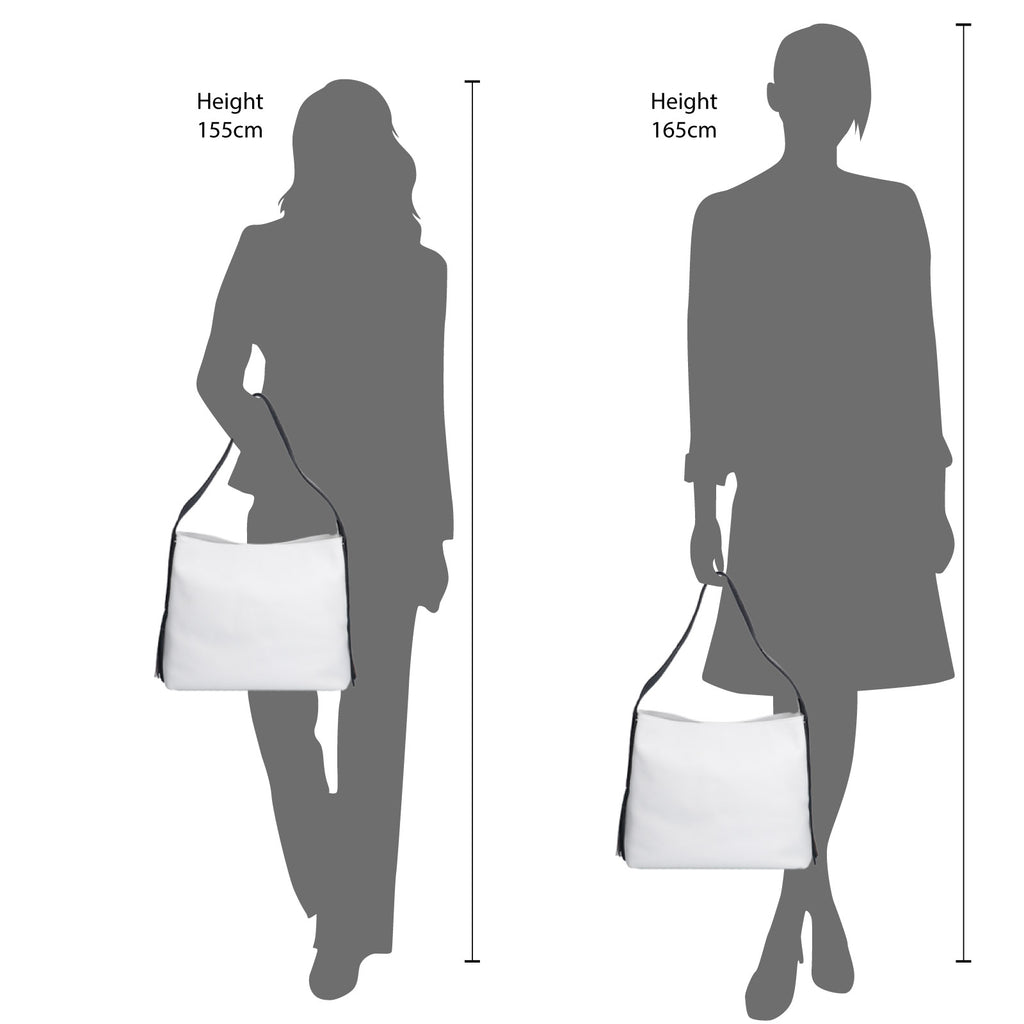 イタリア Del Conte社製の色使いが綺麗なバッグ。サイドにフリンジを施したデザインは、コーディネートのアクセントとして活躍します。天ファスナーがついたメインポケット(中央のポケット)に貴重品を、後ろあおりポケットには常に取り出すパスケースや携帯など、小物を分けて収納ができ、使い勝手が抜群です。また底に鋲をつけ、汚れや擦れを軽減します。多彩な仕立てとデザイン性の高さが魅力なバッグです。