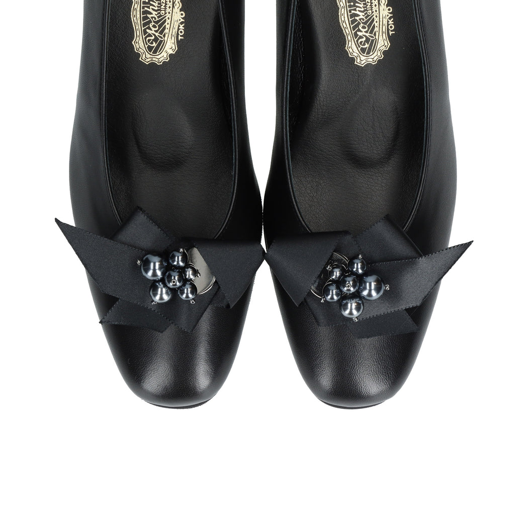 人工パールを葡萄のようにデザインしたサテンリボンアクセサリー。少し大振りなので、フォーマルすぎず、カジュアルスタイルにも似合います。