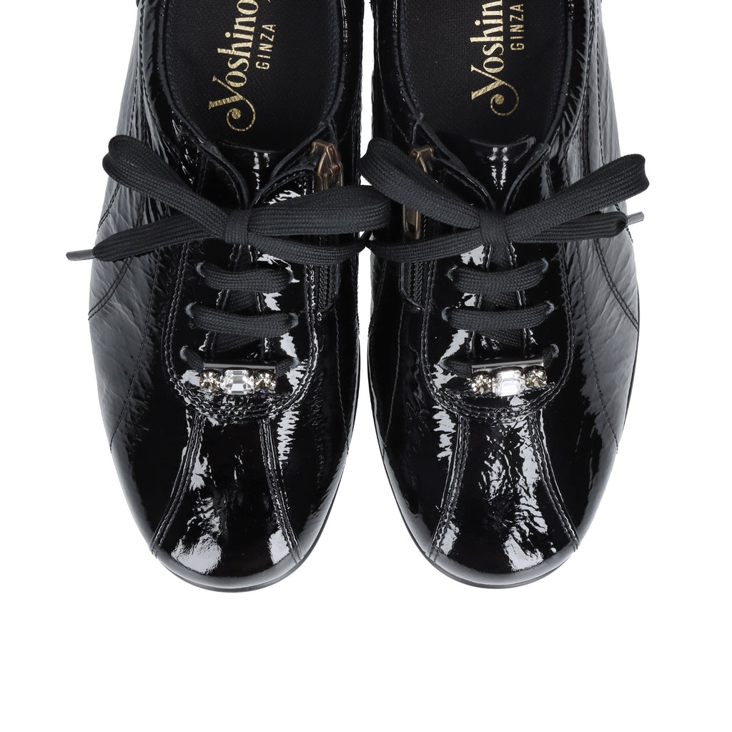 靴紐に通すタイプのオリジナルアクセサリーです。スワロフスキー社の大粒クリスタルガラスを使いました。美しい輝きが足元をグンとお洒落に引き立てます。巾着入りなので、手軽なギフトにもお勧めです。