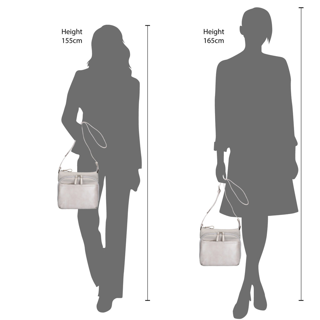 ショッピングやご旅行にと人気の斜め掛けタイプ。軽くソフトな仕立てです。光沢のあるプリント素材を効果的に使ったエレガントな雰囲気のデザインです。負荷の掛かるショルダー紐には牛革を使用しています。大きく前に開くファスナー式のポケットは、物がこぼれ難いマチ付き。中身が見えやすいネットポケットやオープンポケット。背側にもファスナーポケット。つい何処かに紛れ込んでしまう細々とした物を綺麗に整理する事が出来る嬉しい仕様です。ファスナーは、引き手に指を引っかけて開閉できる機能的な仕様です。