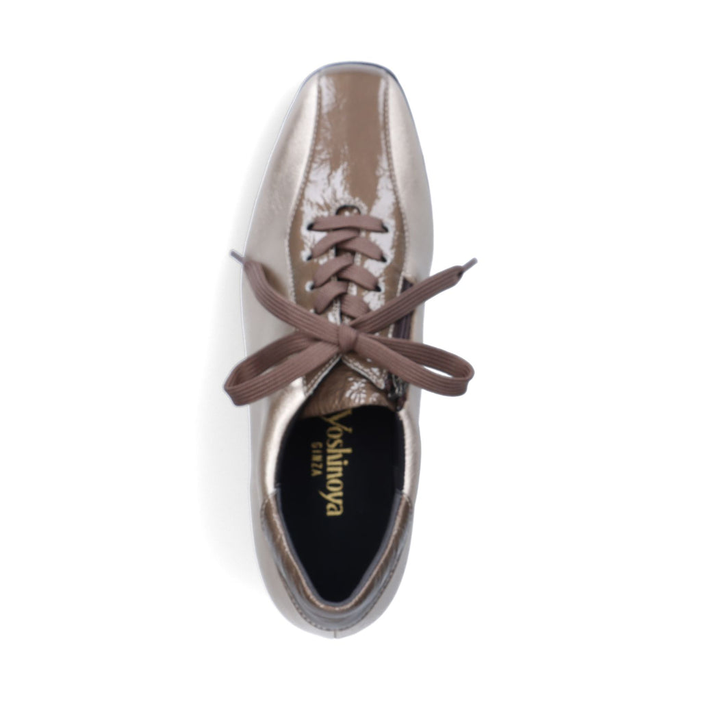 つま先まで伸びやかな印象があり、ひざ下が長く見える脚長効果が特徴のレースアップシューズ。エナメルのスワールモカはエレガント感の演出と共に、異素材コンビによって脚長効果をより高めます。甲の内側にはファスナーを設け、着脱性の良さも実現。