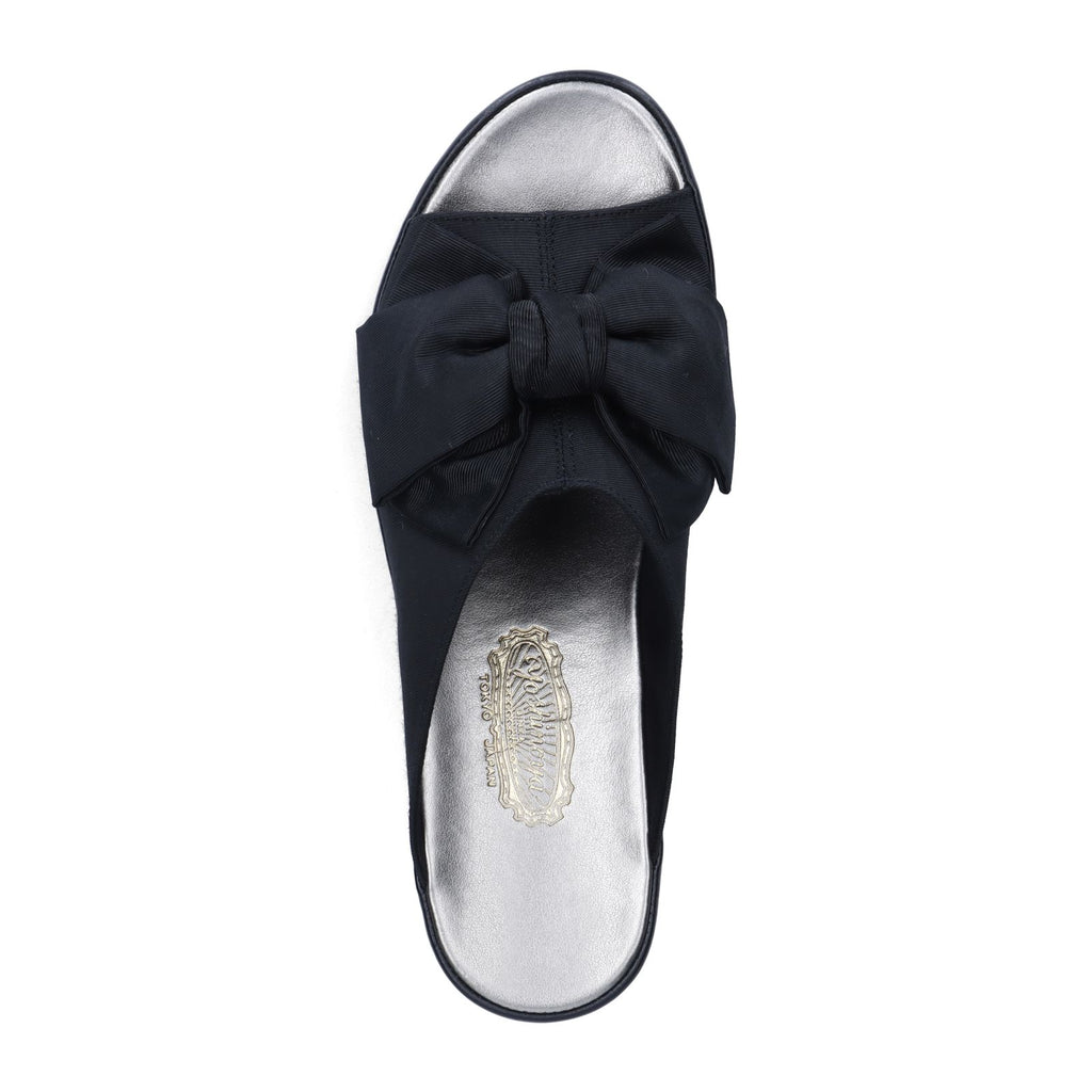 大きめのサテンリボンが華やかな印象のスリッパ。4.5cmのミドルヒールはスタイルアップも叶う高さです。ご友人を招いてのホームパーティなど、ちょっとエレガントに装いたいシーンはもちろん、オフィス履きとしてもお使いいただけます。足裏に気持ちよくフィットするフットベッド仕様なので履き心地も快適です。室内履き専用。