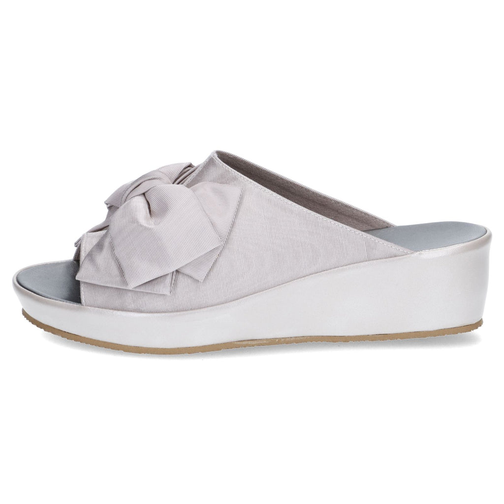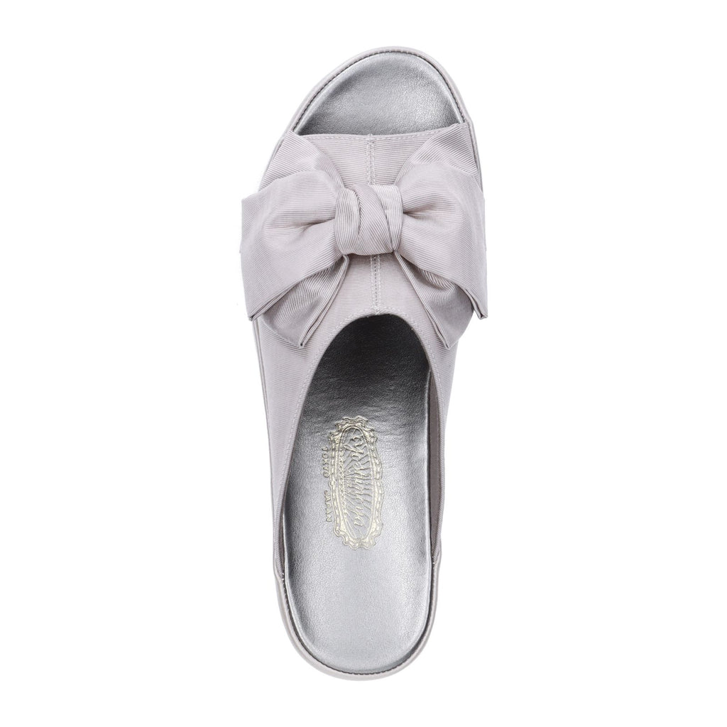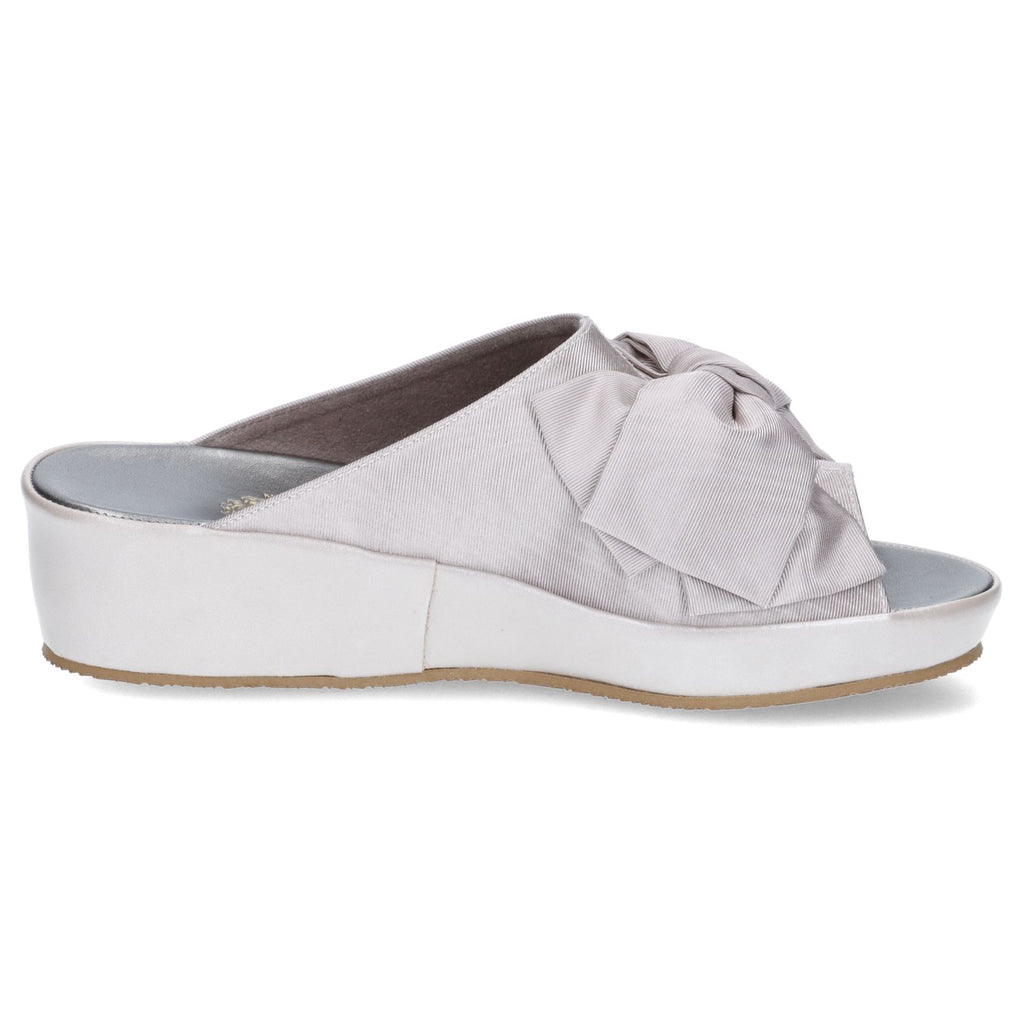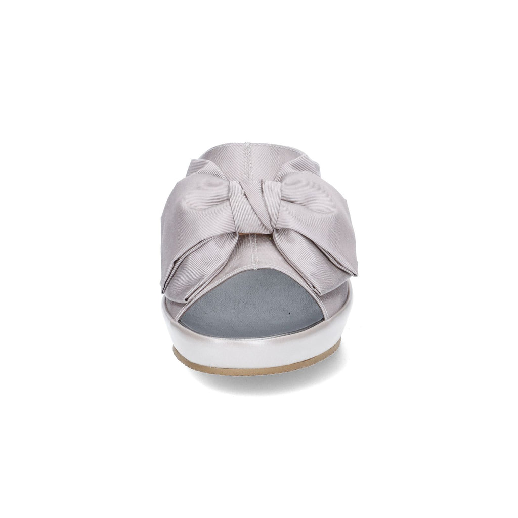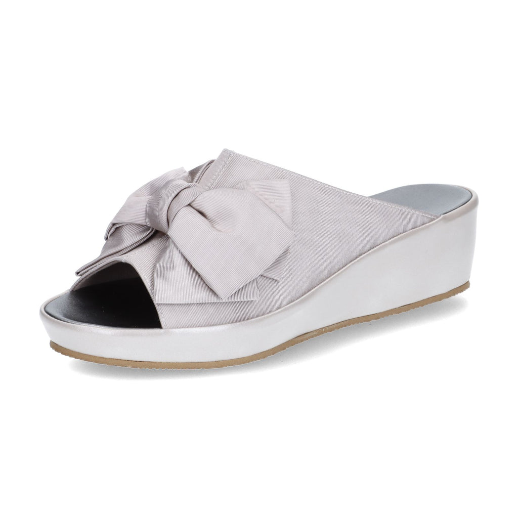 大きめのサテンリボンが華やかな印象のスリッパ。4.5cmのミドルヒールはスタイルアップも叶う高さです。ご友人を招いてのホームパーティなど、ちょっとエレガントに装いたいシーンはもちろん、オフィス履きとしてもお使いいただけます。足裏に気持ちよくフィットするフットベッド仕様なので履き心地も快適です。室内履き専用。