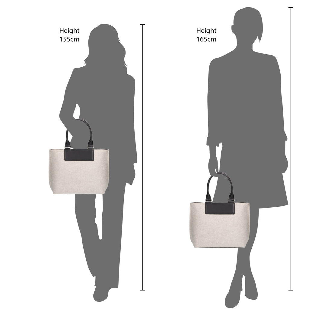 コーティングキャンバス生地を使用して軽やかに仕立てた、働く女性におすすめのトートバッグです。A4サイズの書類やPCがすっぽりと収納できる大きめなサイズが魅力。コーティングを施した生地は、汚れがつきにくい素材です。背側にポケットを、内装にオープンポケットとファスナーポケットを配し、様々な小物が収納できます。底に鋲つけ、汚れがつきにくい仕立てです。黒の革を取り入れたバッグは、スーツや綺麗めスタイルによく馴染みます。