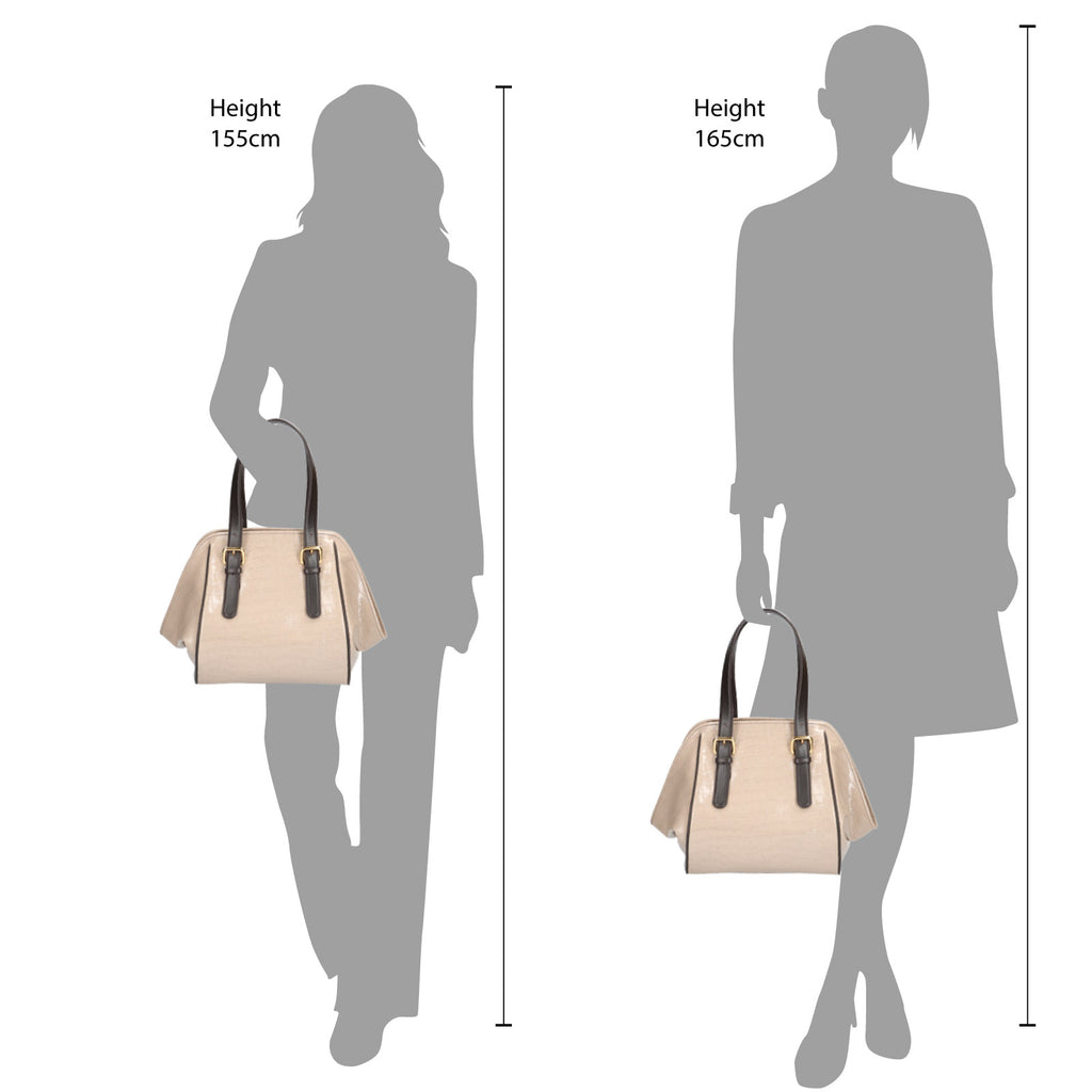 日本の職人が確かな技術で作った日本製のバッグです。上品なクロコの型押しを使用したバッグは手紐の長さを調整して、テサゲからショルダーまで対応できます。ダブルファスナーで開閉がしやすい仕立てです。内装部分には小物を整理できるポケットをつけ、貴重品も収納できます。底鋲がつき化粧台に置く時も安心で、底部分の痛みや汚れを和らげます。大きすぎないサイズ感は日常使いにぴったりのアイテムです。普遍的なデザインで、長くご愛用いただけます。