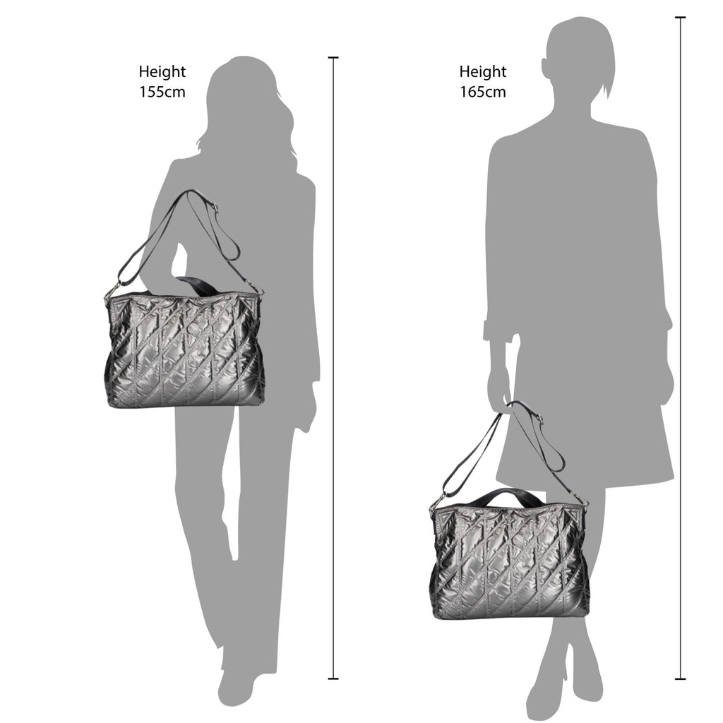変形ダイヤ柄のキルティングで作られたトートバッグです。ふんわりとした優しいフォルムと軽さが特徴です。ショルダーベルト付きで、肩掛け・斜め掛けとスタイルを変えて楽しめる2WAY仕様が魅力です。内装のオープンポケットとファスナーポケットで小物を分けて収納が出来ます。A4サイズや雑誌なども横向きに入り、収納力が抜群です。シンプルなデザインでコーディネートを選ばず、通勤から普段使いまで幅広く使えるバッグです。