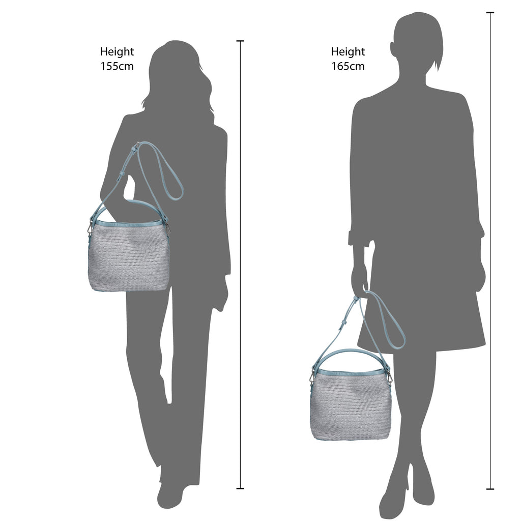 バケツ型のデザインに、軽くて清涼感があるラフィア風の生地を使用したバッグです。内側のナス管を留めると形が変わる仕立てです。ショルダー紐は長さの調整と取り外しが可能です。スタイルや気分に合わせて1本手から斜め掛けまで持ち方が楽しめる2WAY仕様です。内装部分にオープンポケットとファスナーポケットをつけ、様々な小物が収納できます。シンプルなデザインに綺麗なカラーコンビが新鮮なバッグは、どんな着こなしにも馴染みやすく、モダンな印象を与えます。