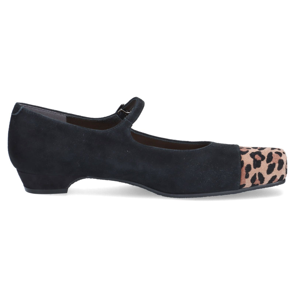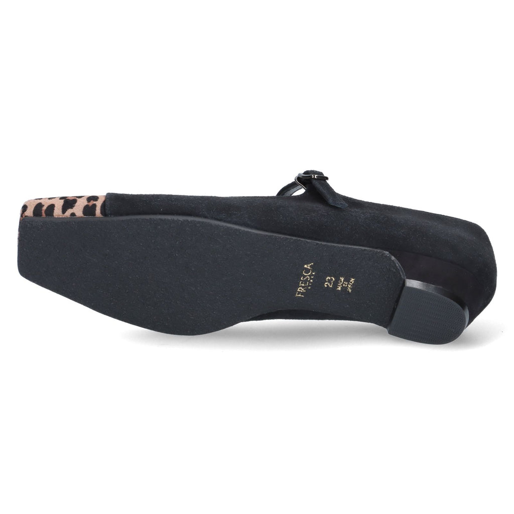 軽度な外反母趾の方にお勧めの晴雨兼用パンプスです。ストラップ付デザインのメリージェーンタイプはしっかりと甲を押さえ、底幅を広くとり足に負担を感じさせない足入れが特徴です。つま先から外反母趾部分にかけてスポンジの裏材を使用して、ソフトな足あたりです。中底に反発材を使用して歩行の衝撃を吸収します。中敷素材は防菌加工を施し、衛生面に高い効果発揮します。シックなレオパード柄はいつものスタイルに加えるだけで華やかさを添えてくれます。