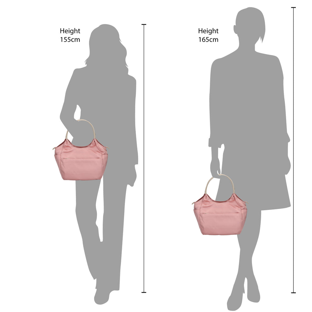 気軽に持てる2本手バッグ。ソフトな仕立てで収納力もたっぷり。開閉は中央に安心のファスナー。ファスナーの前後に収納力のあるポケットはマグネット留め。両サイドにオープンポケット。頻繁に使う物の収納に重宝します。前面と背面にファスナーポケット付き。細々とした物の収納にも困まらない仕様です。本体には光沢のあるナイロンを使用。綺麗な色も魅力です。開閉はファスナー。左右どちら側にも開閉出来るダブルファスナー式です。内側には貴重品などの収納に便利なファスナーポケット付き。