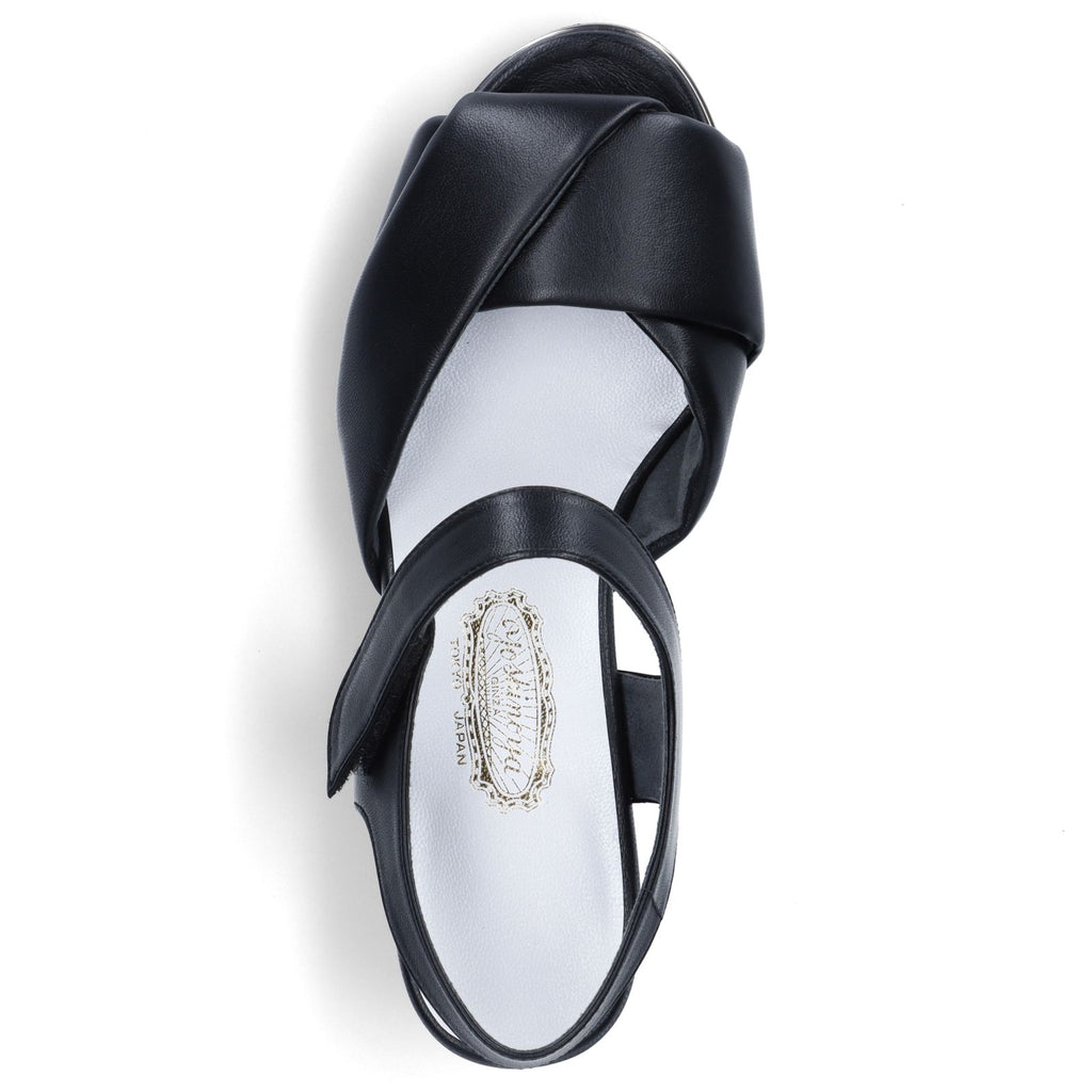 シープ(羊革)をチューブ状にし、5mmと3mm厚のクッション材を挟み込んでいます。あえて幅の広いチューブにして、足を包み込むようにしたデザインのサンダルは、素足で履いてもソフトな足当たりです。中底にもクッションを貼り合わせているので足裏の当たりも抜群です。シープ素材で優しい印象に仕上がっていますので、スカートやワンピースにもお勧めです。