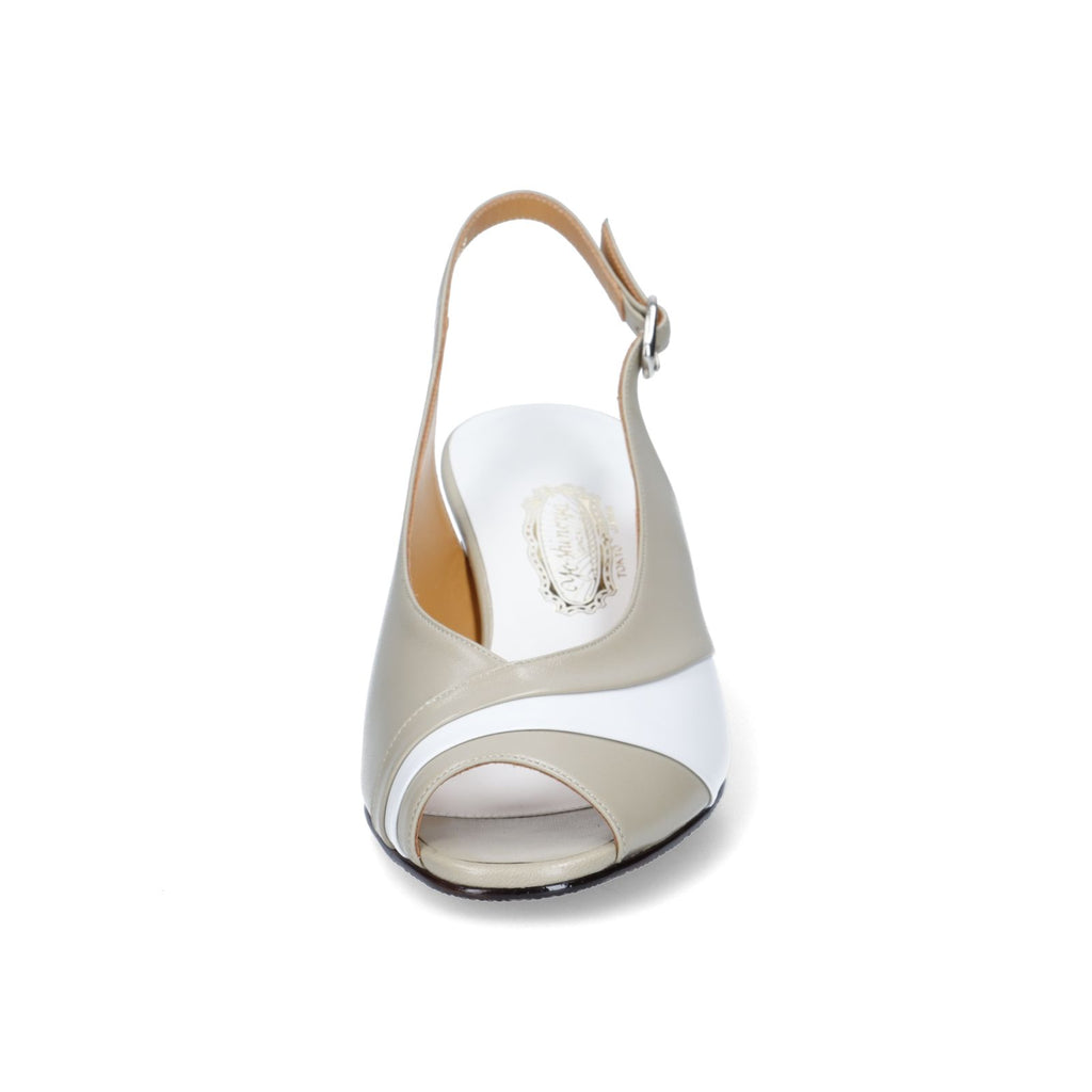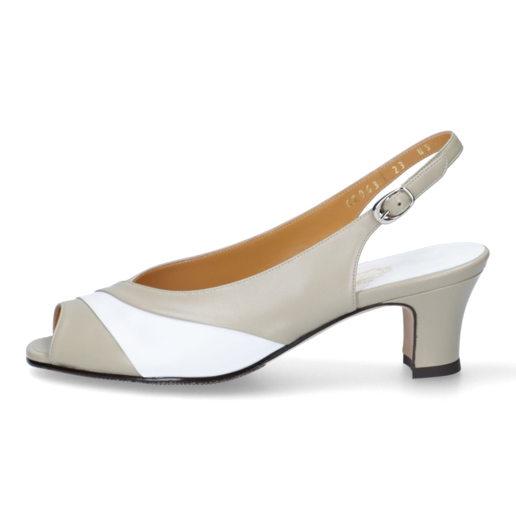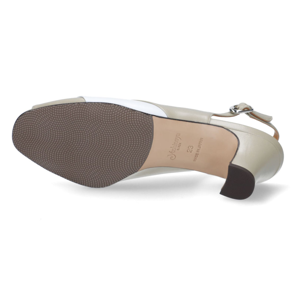 サイドの切り替えは革を薄く漉き、ステッチが見えないように返し縫いにしています。熟練の職人だけができるテクニック、カーブを描くラインは職人技です。夏のお出掛けにも対応するベーシックなカラーコンビです。「セージグリーン」はベージュ、紺、グレーにも合うお勧めのカラーです。