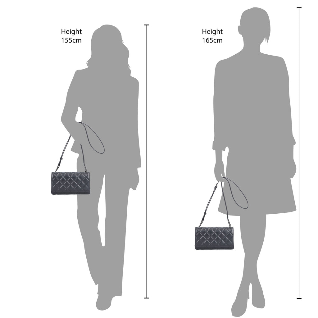 ちょっとした外出や食事にはこれ1つでOK。小さいながらも機能満載。装いを上品に演出するシックなカラーを取り入れて装いを鮮度アップ。ストラップを外してクラッチとしても使えます。本体には柔らかなキルティング加工をした牛革を使用。傷や汚れが目立ち難くい点も魅力。開けると中は3つに分かれています。仕切りを兼ねたファスナーポケット。ICカード類を収納する小ポケットも。現金やスマートフォン、パスポート等も入ります。背側にもポケットを完備。コンパクトで収納上手なポシェットです。