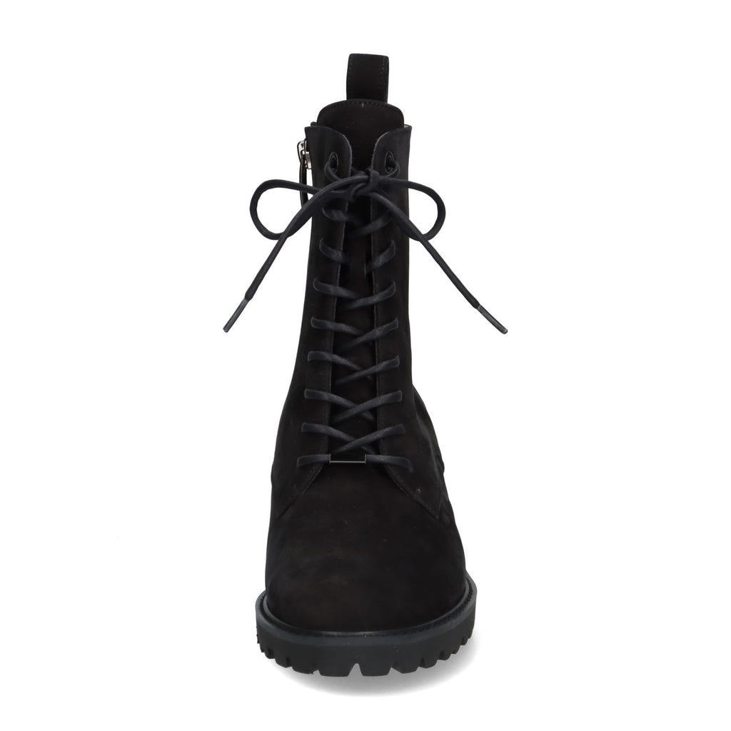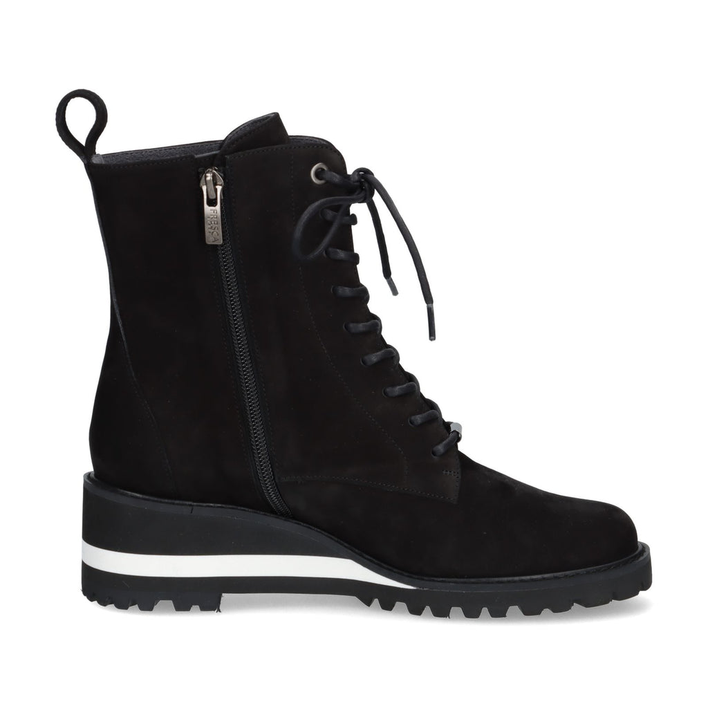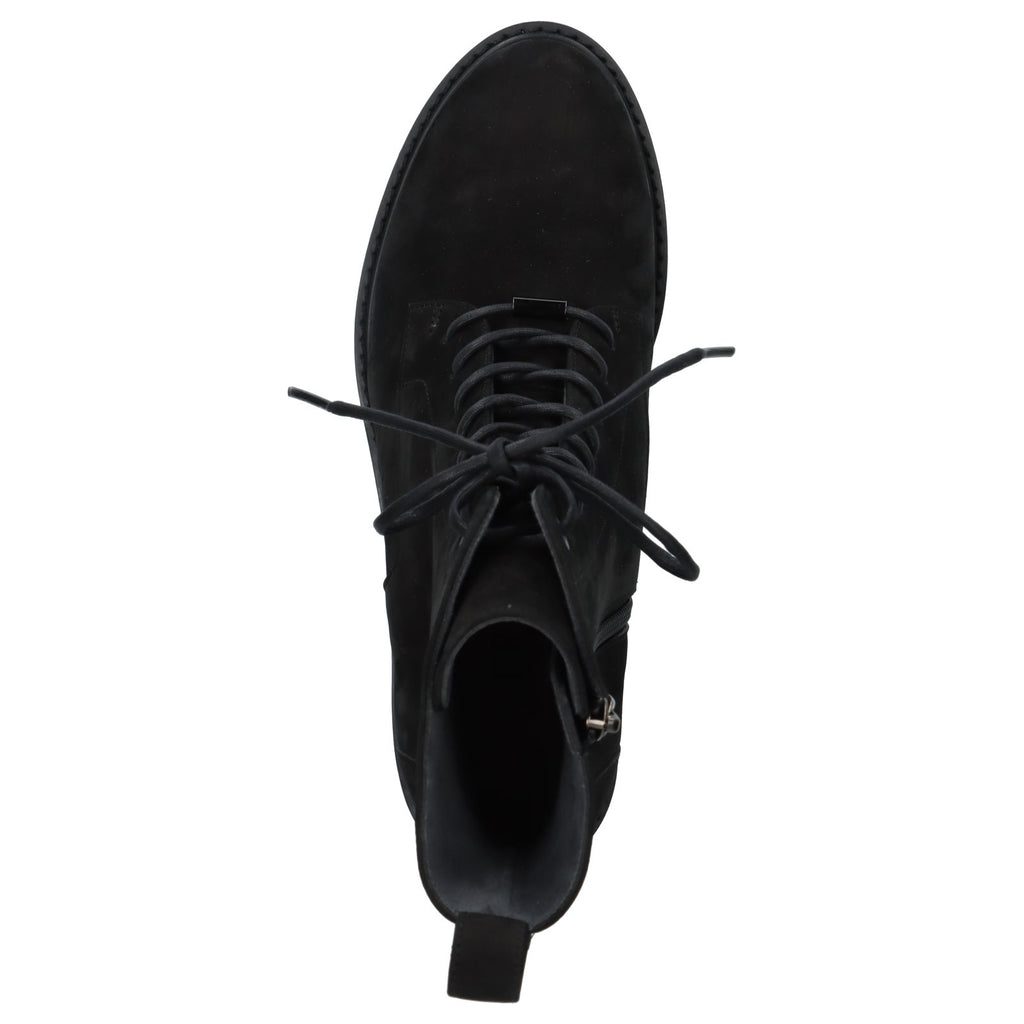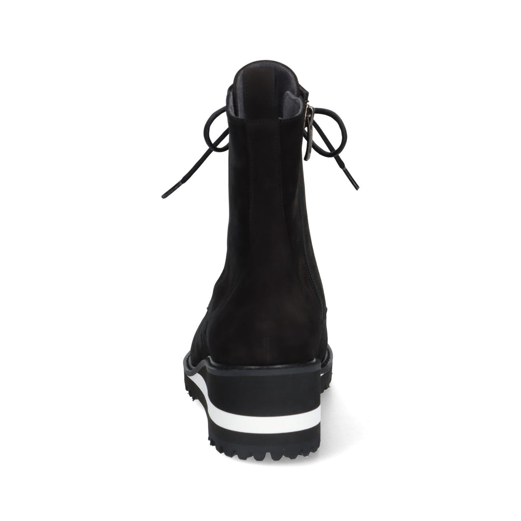 厚底のタンクソールを備えたウエッジヒールのレースアップブーツ。5cmのヒールが脚を長く見せてくれます。紐通しの管金具やアイレット金具(ハトメ)を施し、金属特有の輝きが本体に美しさとアクセントを与えます。裏材に人工スエードを使用し、ソフトな足当たりを実現。さらに適切なアーチサポートがあるオリジナルのカップインソールが足裏をしっかりと支えます。長時間の着用でも疲れを軽減する機能性とデザイン性を兼ね備えた、カジュアルなレースアップブーツです。